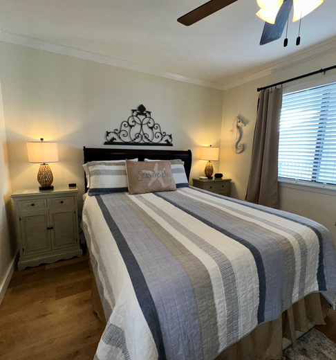 "Shonda communicated well and put me at ease even though she did not have a review as host . Everything went well if not better than expected. Go ahead book! You'll enjoy your stay. We loved the new decor that she upgraded after we reserved the condo. The place is spotless and super clean. My family loved the awesome balcony beach view. Also walking towards the condo in back of building you have a beautiful view of pool and bay. Walk toward the beach was short and nice. Parking lot conveniently located along the way so we picked up our beach gear and drop it after, also there a shower on the way back to rinse off sand. Other guest and building personnel we interacted with are friendly.